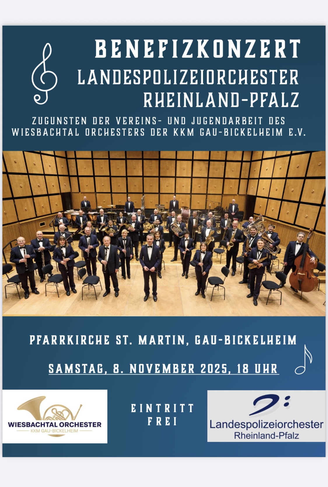 Als Abschlussveranstaltung unseres 100-jährigen Bestehens laden wir, im Rahmen eines Kirchenkonzerts in der Pfarrkirche St. Martin, zu einem Benefizkonzert des Landespolizeiorchester RLP ein.