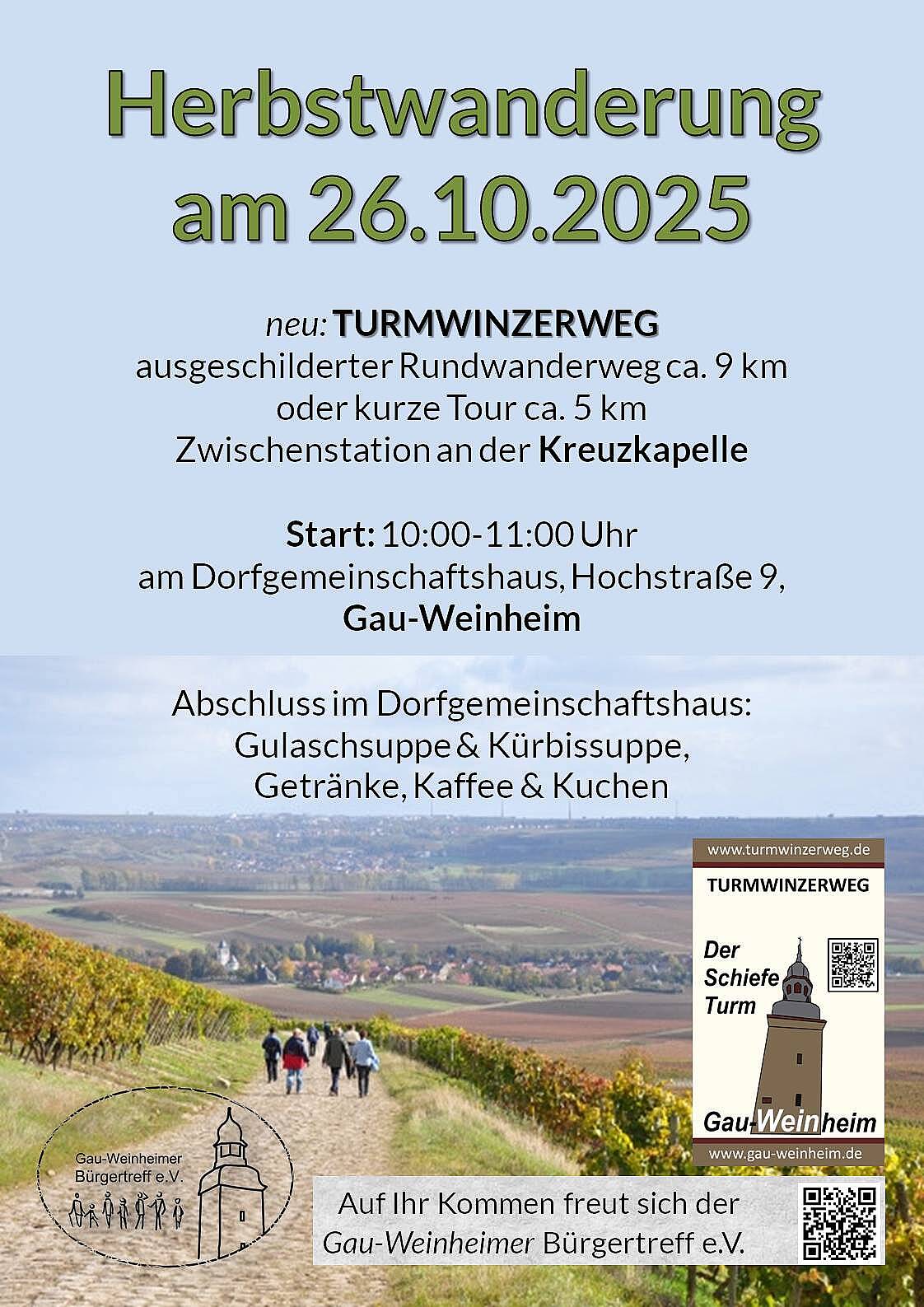 Start: 10:00-11:00 Uhr am Dorfgemeinschaftshaus, Hochstraße 9, Gau-Weinheim