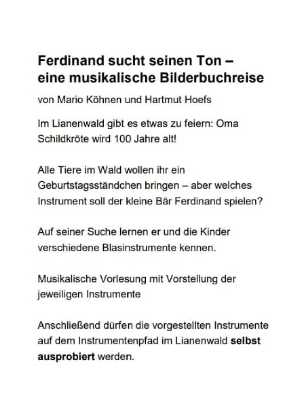 Musikalische Vorlesung mit Vorstellung der jeweiligen Instrumente