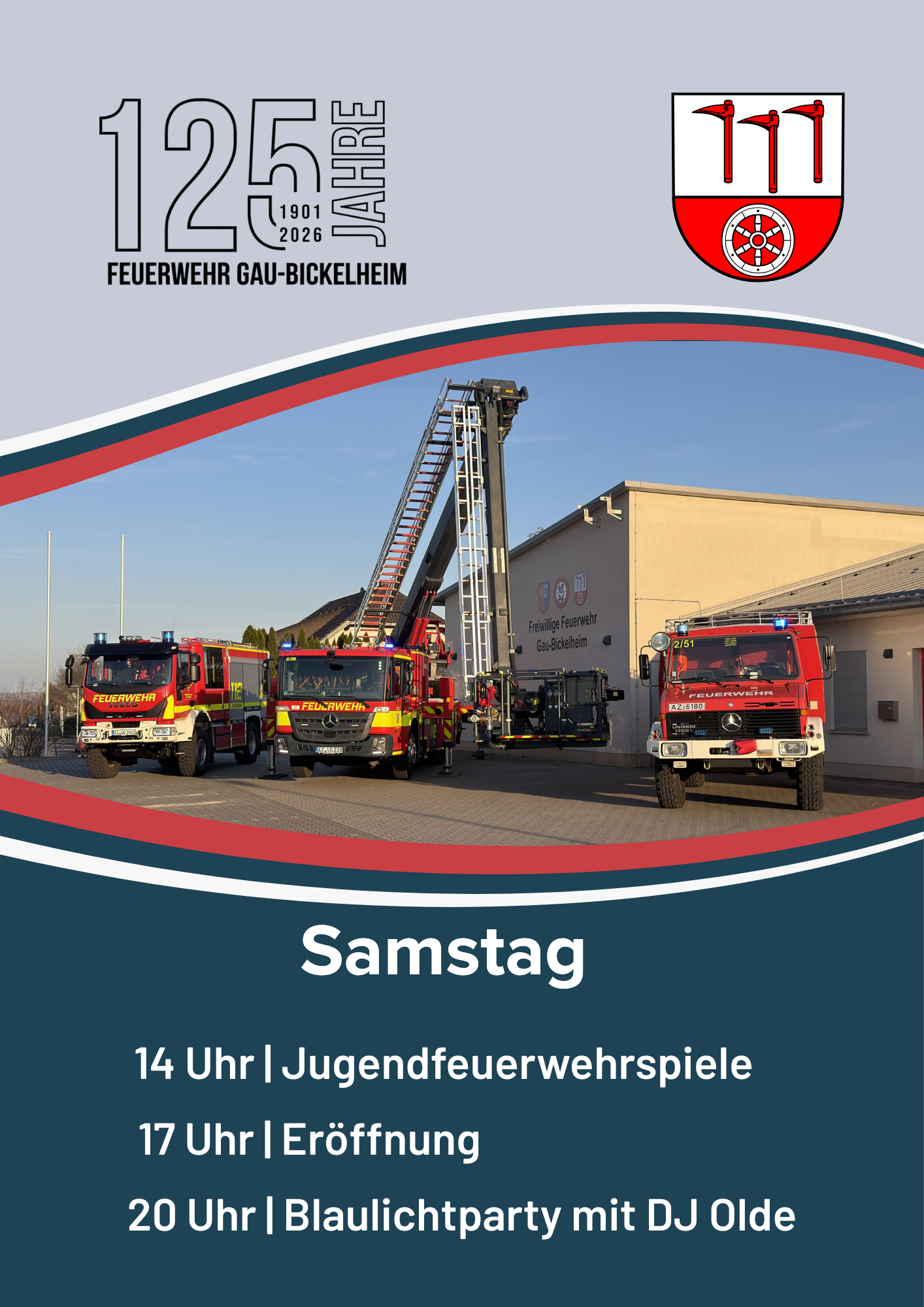 in diesem Jahr gibt es für uns einen ganz besonderen Anlass zum Feiern: Die Feuerwehr Gau-Bickelheim blickt auf 125 Jahre Engagement, Zusammenhalt und Einsatzbereitschaft zurück. Dieses stolze Jubiläum möchten wir gemeinsam mit Euch feiern!