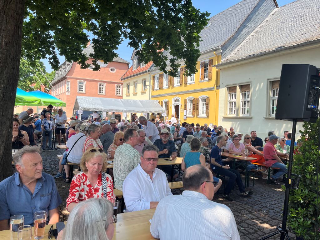 Am Samstag, den 14. Juni, wurde der Platz „Auf dem Römer“ in Gau-Bickelheim zum Treffpunkt für Musikliebhaber und Unterstützer des Wiesbachtal Orchesters. Bei sommerlichen Temperaturen genossen zahlreiche Besucher das Marktfrühstück mit Musik, Geselligkeit und rheinhessischer Gemütlichkeit im Schatten der alten Eiche.