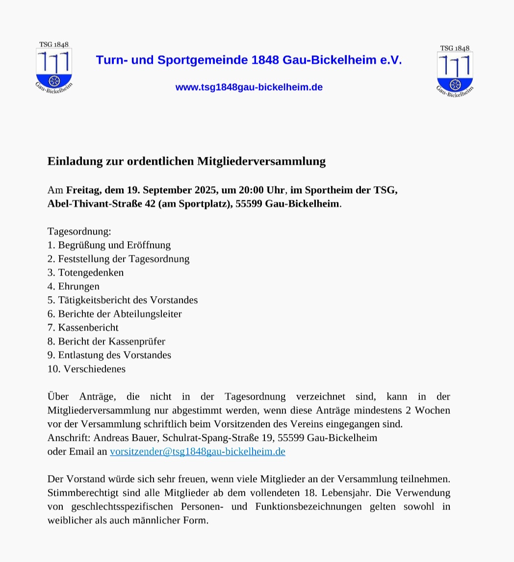 Mitgliederversammlung der TSG Gau-Bickelheim