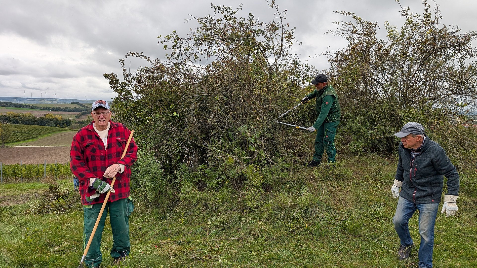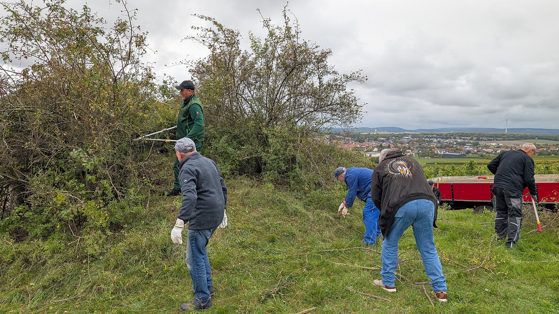 Mit einer großen Mannschaft, viel Werkzeug und jeder Menge Muskelkraft sind wir am gestrigen Tag dem Wildwuchs am Wasserhäuschen zu Leibe gerückt!