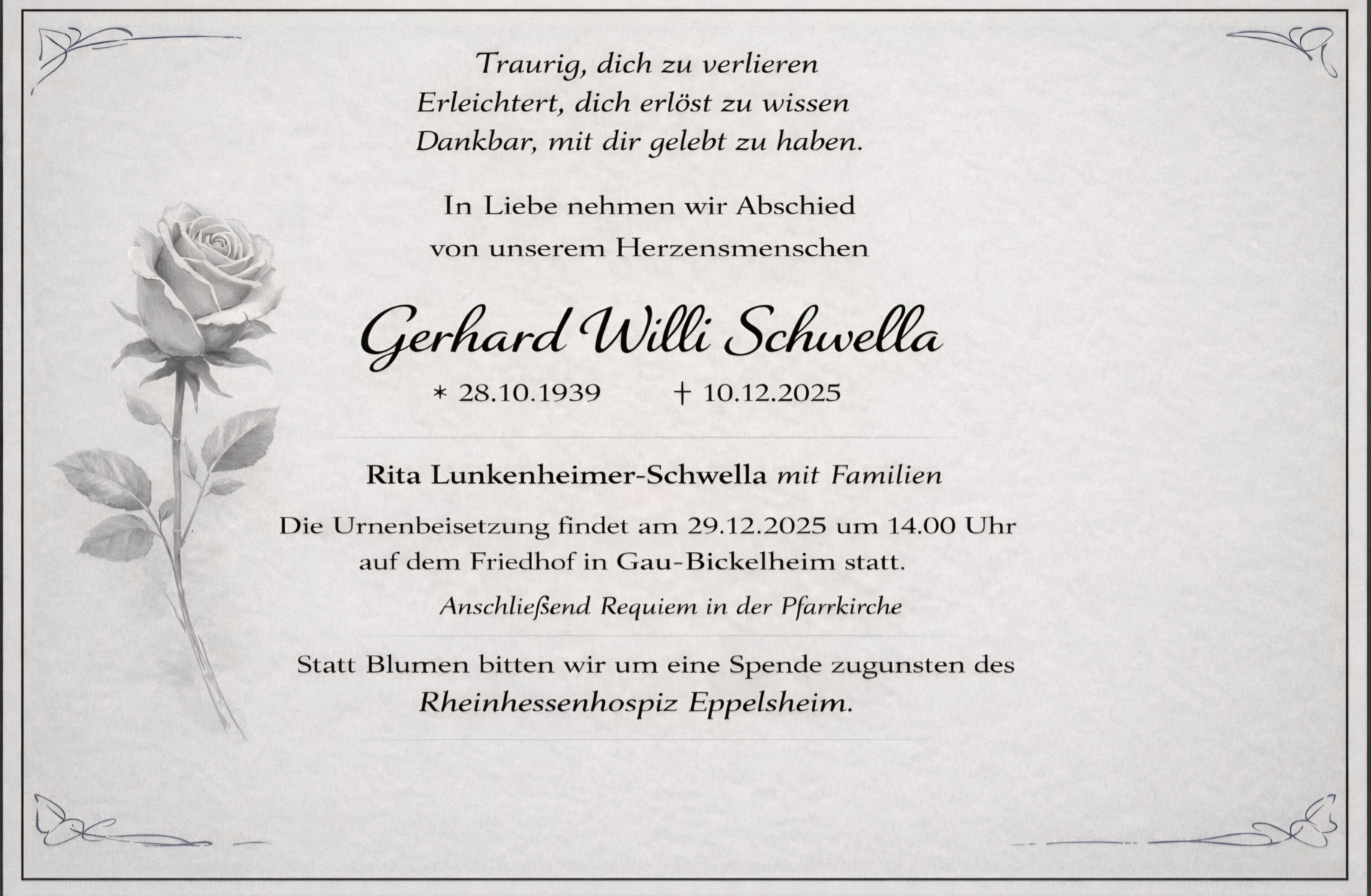 Lieber Gerhard Du wirst uns immer fehlen, ob bei den gemeisamen Arbeiten in der Gemeinde sowie auch bei den Zusammenkünften danach.