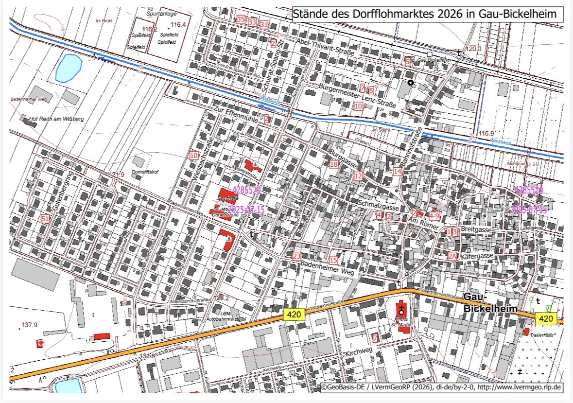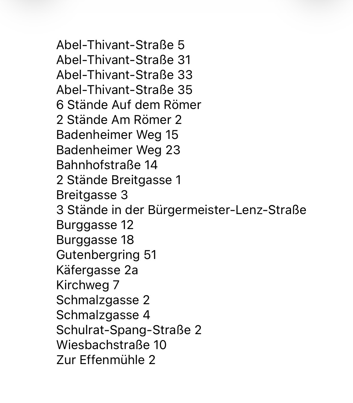 Die Standplätze können Sie der Liste oder der Karte (rot markierte Hausnummern) entnehmen.