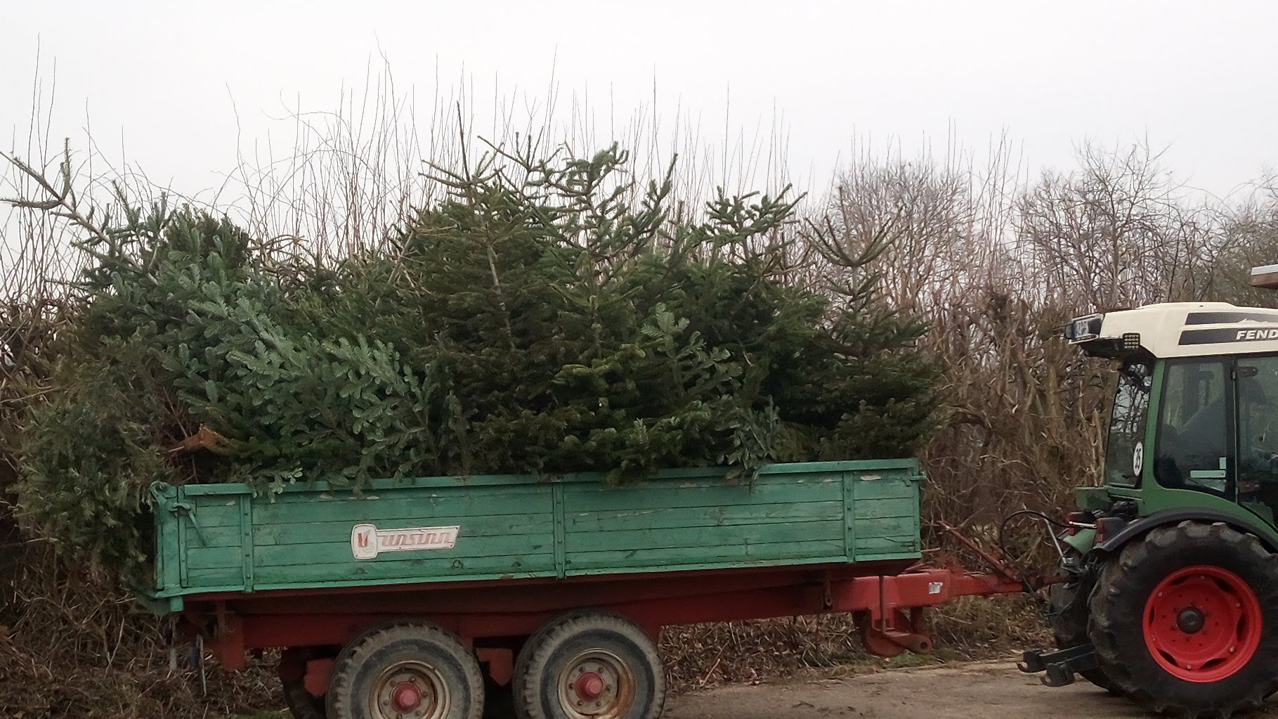 Einsammeln der Weihnachtsbäume