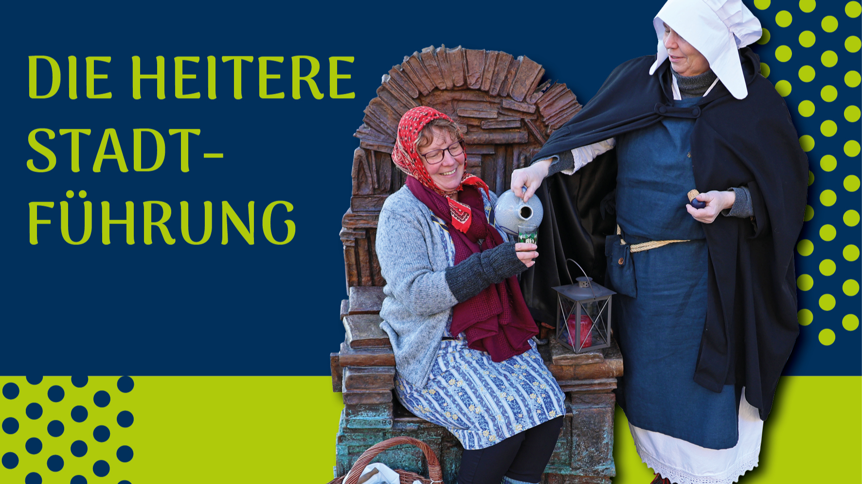 Heitere Kostümführung mit zwei Kultur- und Weinbotschafterinnen als Rollenspiel in rheinhessischem Dialekt mit 4er Weinprobe