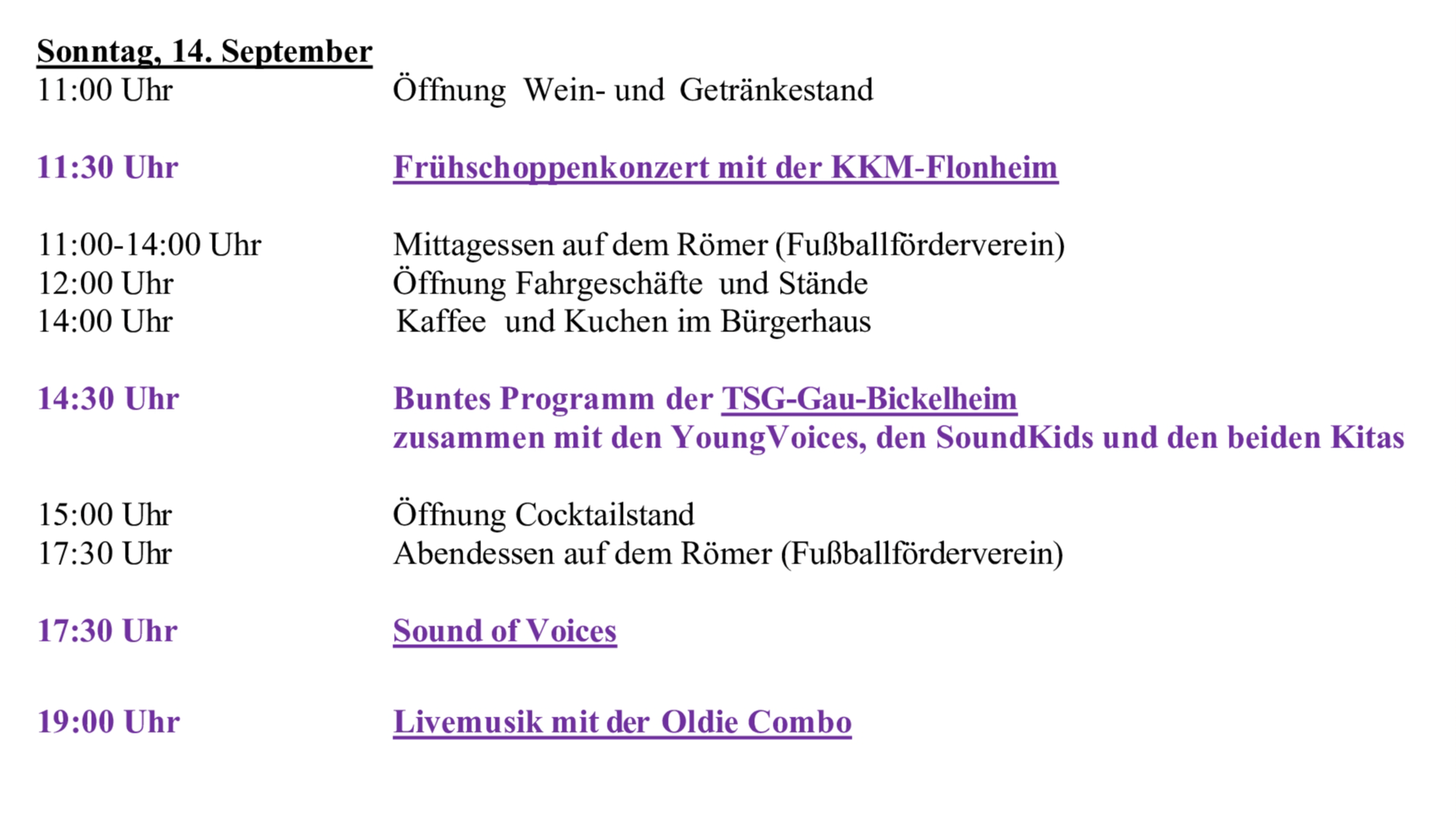Programm Kerbe-Sonntag 14.09.2025